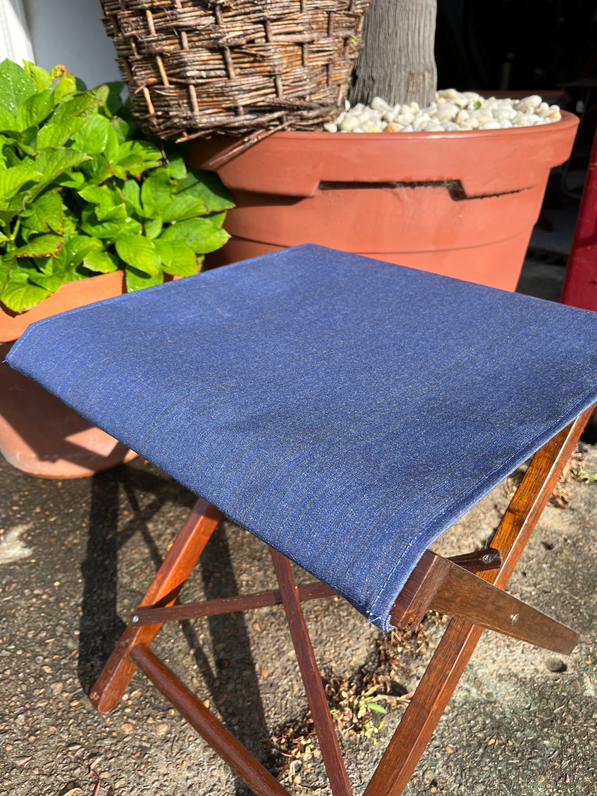 BLACK FRIDAY SPECIAL - Hardwood Stool Outdoor Denim Synthetic Sling